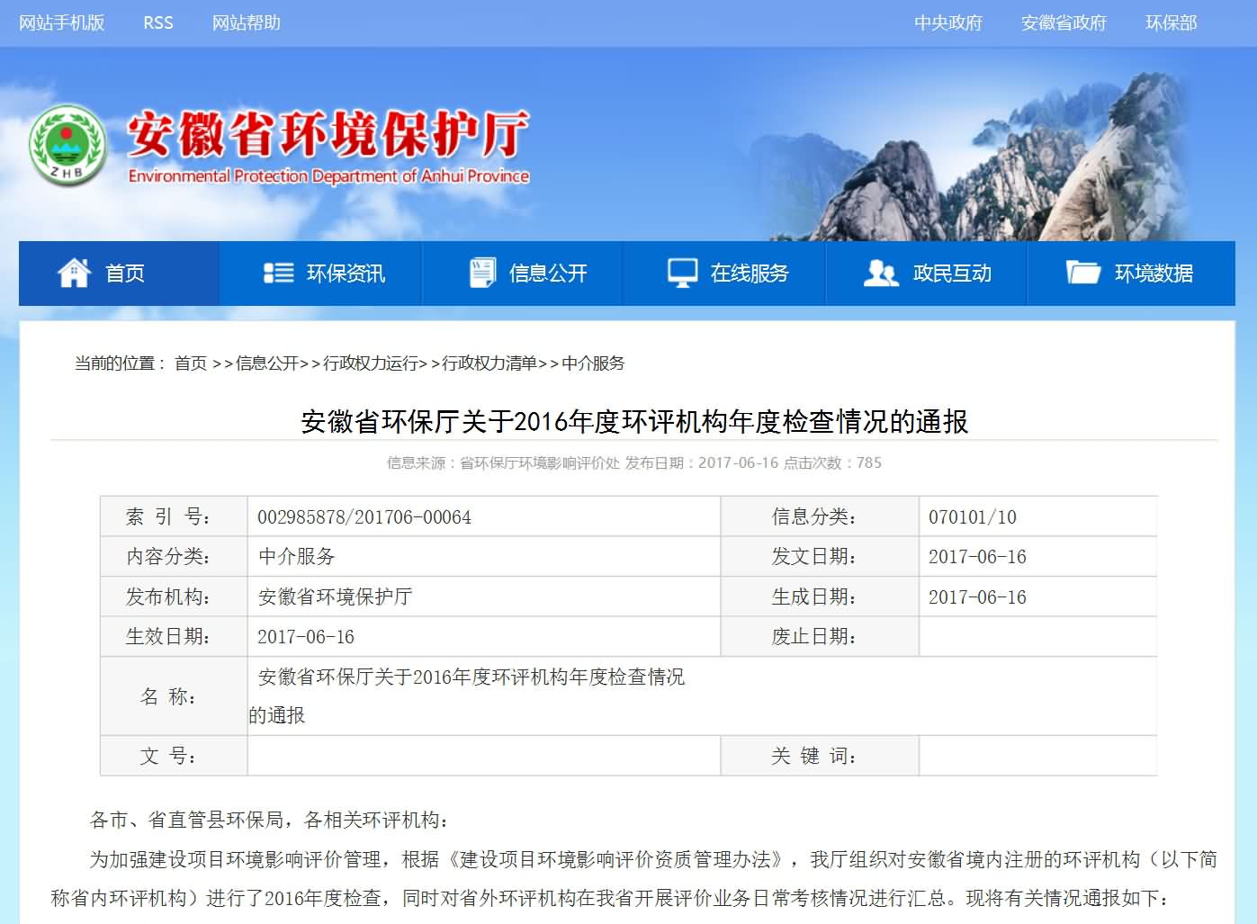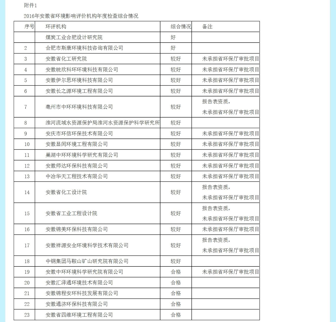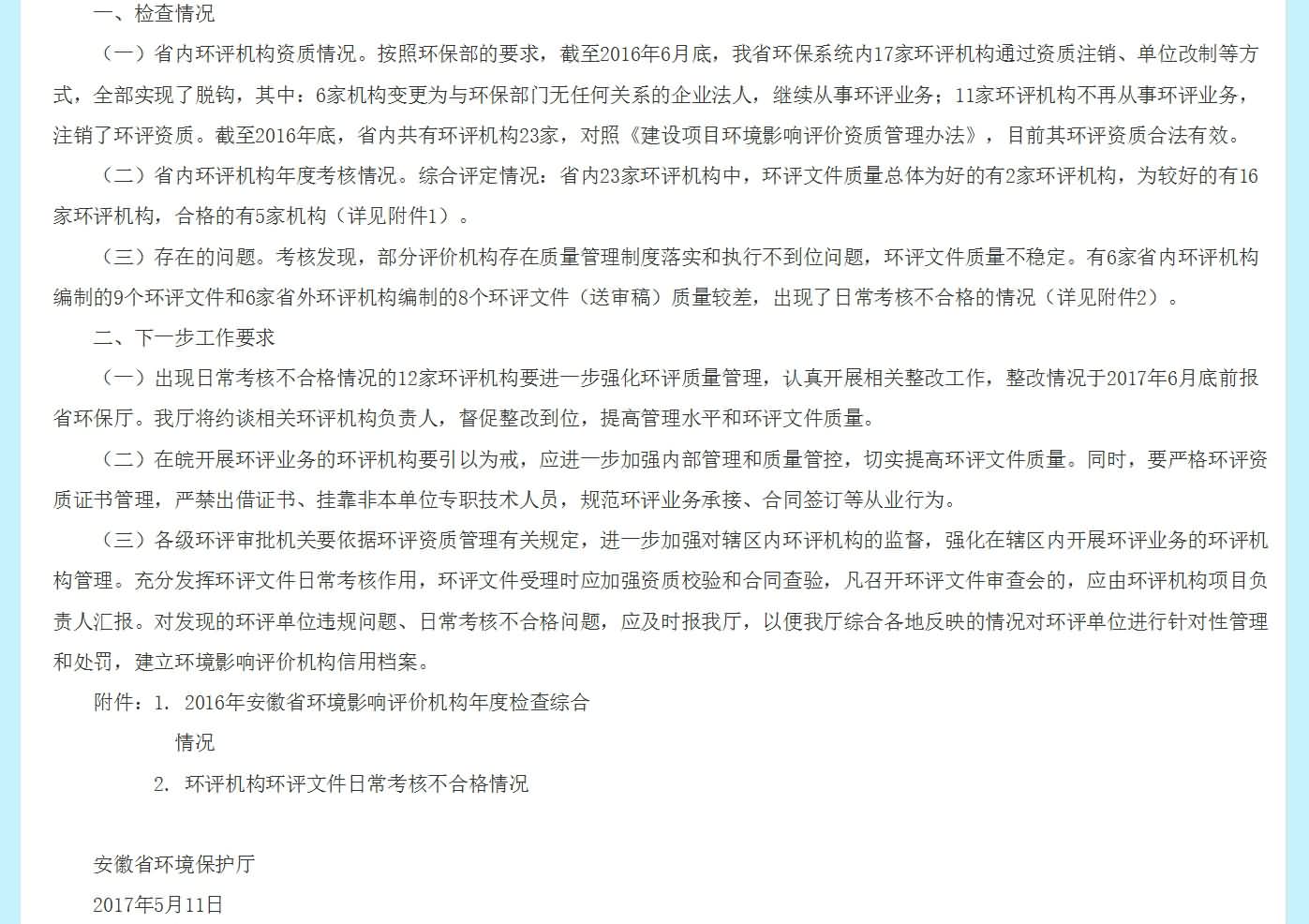 安徽省環保廳文件:安徽省環保廳關于2016年度環評機構年度檢查情況的通報